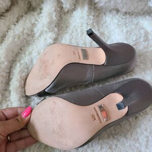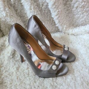 Badgley Mischka Silver Satin Wrapped Rhinestone Embellished Peep-toe Heels