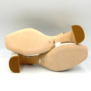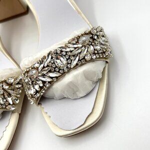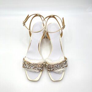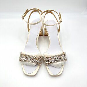 Badgley Mischka Size 7.5 Marsha Ivory White Jeweled Dress Sandals Heels Shoes