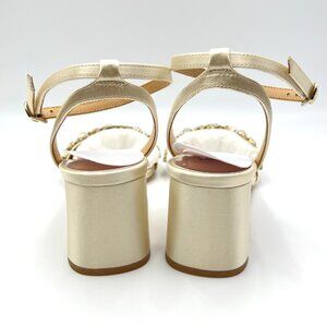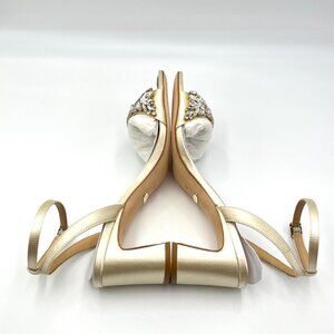party special event evening dress up formal elegant wedding bridal bride bridesmaid prom pageant satin shoes flats heels pumps strappy gold silver shimmery sparkly sparkle glitter glittery bling jewel jewels jeweled rhinestone rhinestones crystal crystals bhldn gems ankle strap open toe low block kitten stiletto heel christmas metallic shiny pageant bhldn pearls embellished embellishments new years holiday womens women's size 7.5 spring summer winter fall autumn season __