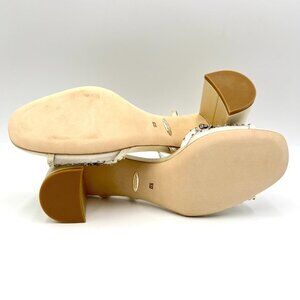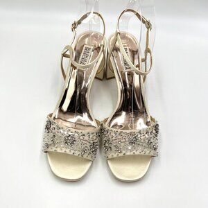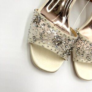 Badgley Mischka Size 8.5 Blaine Ivory Satin Jeweled Dress Sandals Heels Shoes