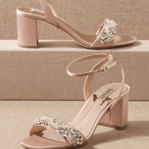 Badgley Mischka Size 9 Clara Blush Pink Jeweled Dress Sandals Block Heels Shoes