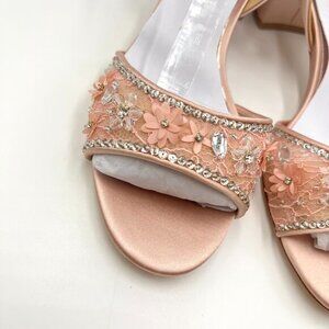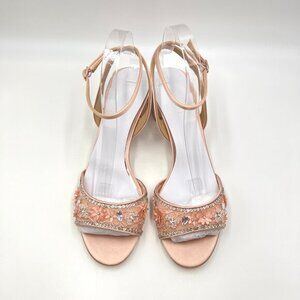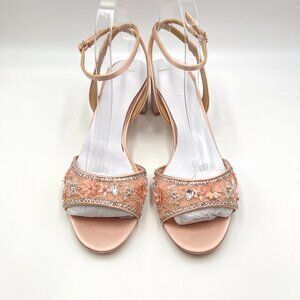 Badgley Mischka Size 9.5 Soft Blush Pink Jewel Floral Dress Sandals Heels Shoes