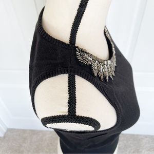 Badgley Mischka Size XS Hand Embroidered Detailed Stitching Sheer Silk Blend Top