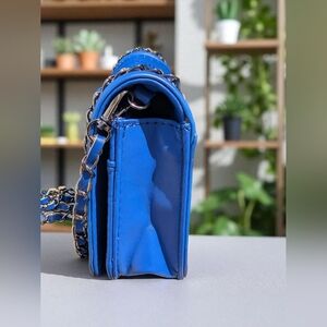 Badgley Mischka Small Crossbody With Frame And Chain On Cover Blue (New)