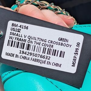 Badgley Mischka Small Quilting With Frame On The Cover Purse Green (New)