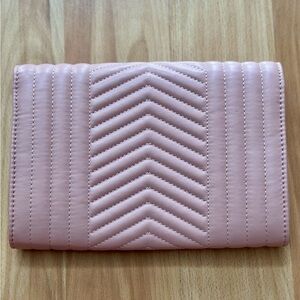 Badgley Mischka quilted envelope crossbody clutch bag. Pale pink. Optional metal strap included. Shows light wear. Good and wearable shape.