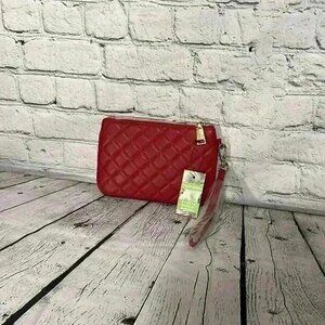 Badgley Mischka Studio Red Quilted Wristlet Clutch Wallet Purse Bag 7" New