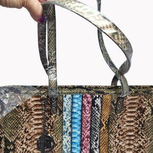 Badgley Mischka Studio Vegan Leather Tote Snake Print Mixed Colors MSRP $129