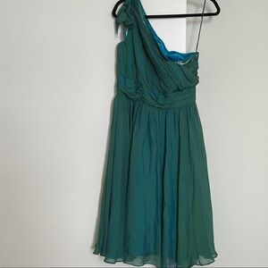 Stylish one-shoulder dress in vibrant teal. Ideal for elegant events. Wedding, cocktails! Beautiful color!