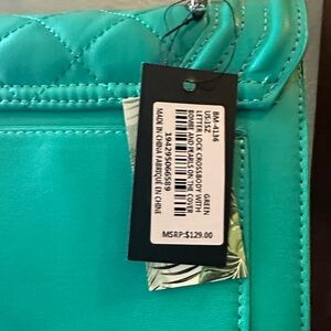 Badgley Mischka Teal Quilted Crossbody with Bombe and Pearls on Cover
