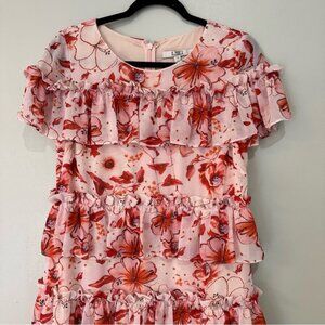 Badgley Mischka Tiered Ruffle Floral Dress Pink Mini Size 10 RTR Designer
