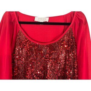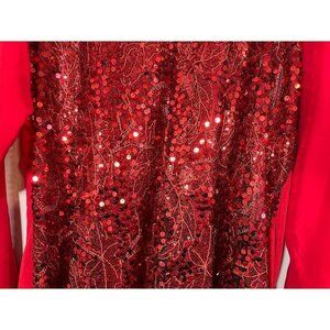 Badgley Mischka Top Women 1X Red Round Neck Pullover Sequin Sparkly Tomato Girl