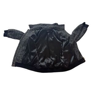 Badgley Mischka Tweed Knit Bomber Moto Jacket Size Large Full Zip Black White