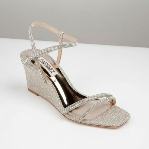 Badgley Mischka Unity Embellished Wedge Sandals 6.5 Gold NEW