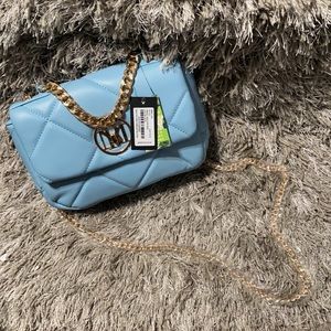Badgley Mischka Vegan Leather Quilted Beautiful Blue Crossbody Bag