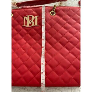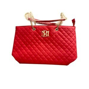 Badgley Mischka Vegan Leather Quilted Red Chain Strap Tote Bag With Gold Accents