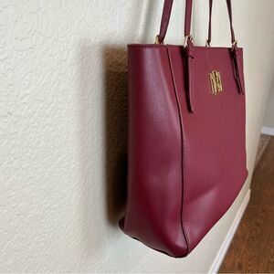Badgley Mischka Vegan Leather Tote with Pin Buckles on Handles in Wine