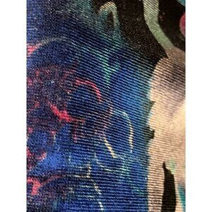 Badgley Mischka Velour Floral Top 2X Blue Retro Boho Western Coastal Preppy 80s