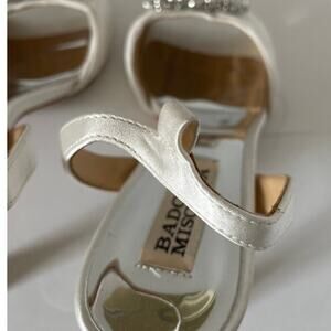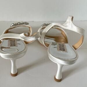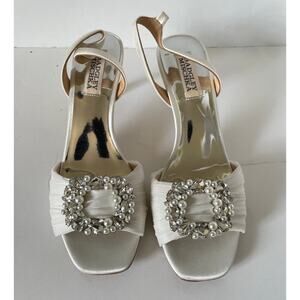 Badgley Mischka White Nixie Pearl and Rhinestone Satin Sandal • Size 6.5 ⬇️