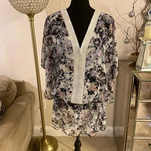 Badgley Mischka White and Purple V-Neck Wrap tunic dress size large