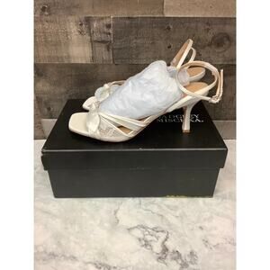 Badgley Mischka Women 8 White Satin Joselyn Stiletto Heel Sandals Bridal LB10-17