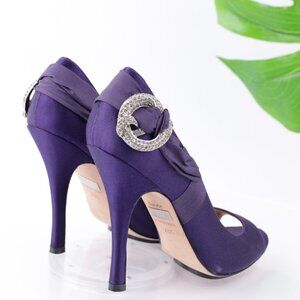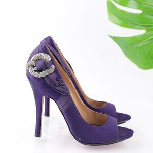 Badgley Mischka Women Eavan Pump Size 7.5 Purple Rhinestone High Heel Dress Shoe