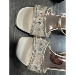 Badgley Mischka Womens 9.5 Tayten Heeled Sandal Jeweled Heels Satin