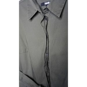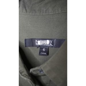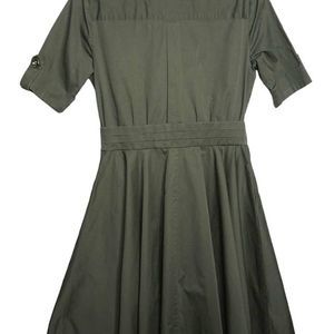 For sale is this Badgley Mischka Women's Army Green Midi Collared Shirt Dress Belted Sz 6. This dress is in good condition! Please note top bottom is missing but is not visible when worn and does not affect the wear of the dress.