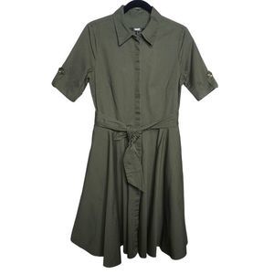 Badgley Mischka Women's Army Green Midi Collared Shirt Dress Belted Sz 6