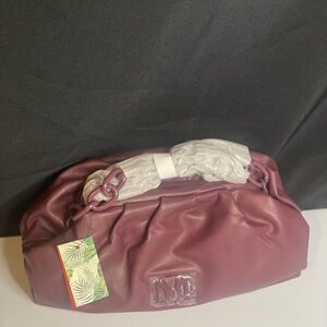 Badgley Mischka Women’s Burgundy Vegan Leather, Ruched Convertible Clutch NWT