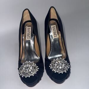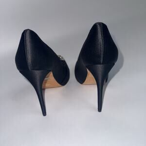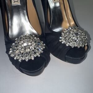 Badgley Mischka Women’s Crystal Embellished Satin Pumps Peep Toe Black Size 6.5M