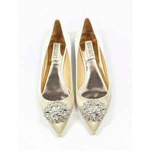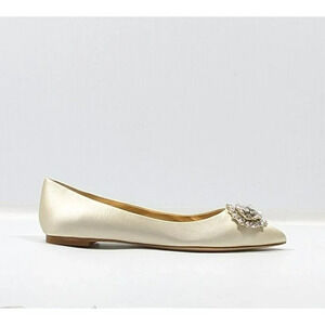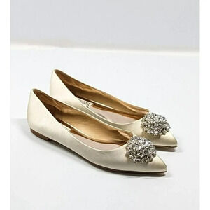 Badgley Mischka Women's Davis Embellished Ivory Satin Pointed Toe Flats Size 6.5