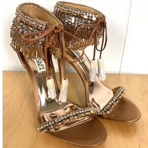 Badgley Mischka Women's Katrina Embellished Satin Ankle-Tie High Heels Size 7