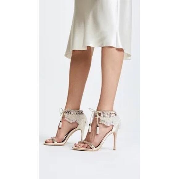 Badgley Mischka Women's Katrina Embellished Satin Ankle-Tie High Heels Size 7