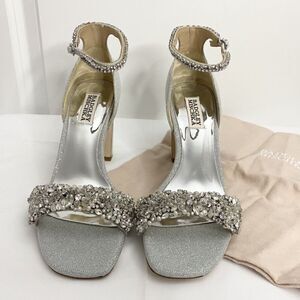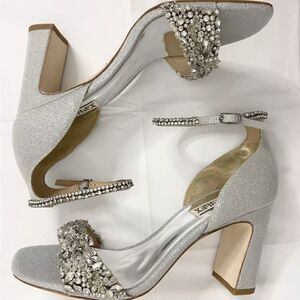 Badgley Mischka Women's Kendall Ankle Strap High Heel Sandals Silver Fab