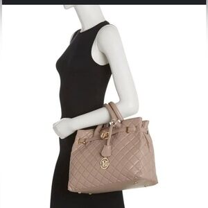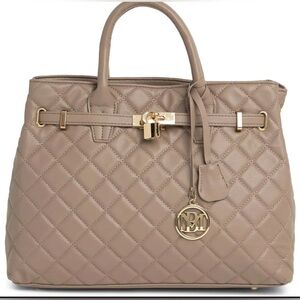 Badgley Mischka Women's Large Diamond Quilted Tote Bag - Natural NWT