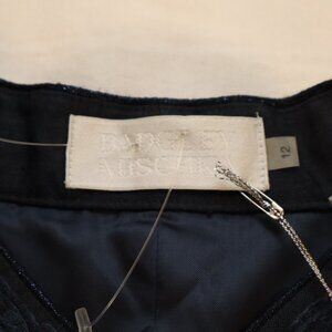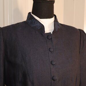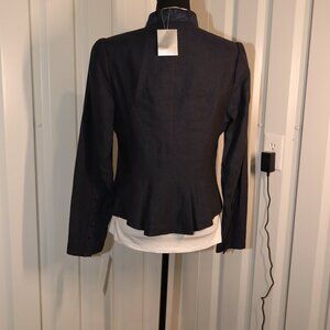 Badgley Mischka Womens Linen Navy Blazer Jacket Peplum Back Buttons Size 12 NWT