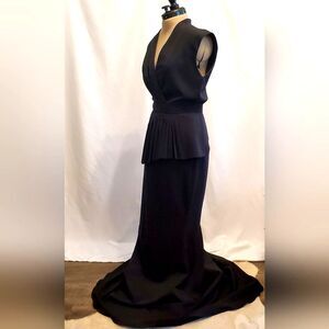 Step out in luxury with this Badgley Mischka mermaid dress — wrap front draped gown with peplum and mermaid skirt, perfect for formal occasions, galas, and evening events.