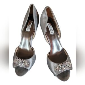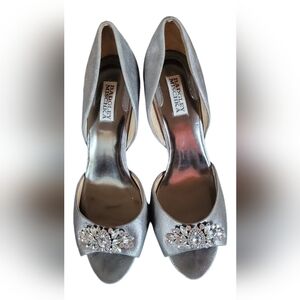 Badgley Mischka Women's Metallic Gray D'orsay Leather Holiday Heels Sz 10