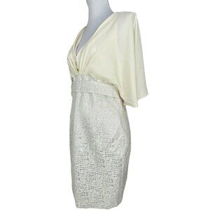 Badgley Mischka Women’s Off-White Silver Metallic Silk V-Neck Party Dress 10/C32