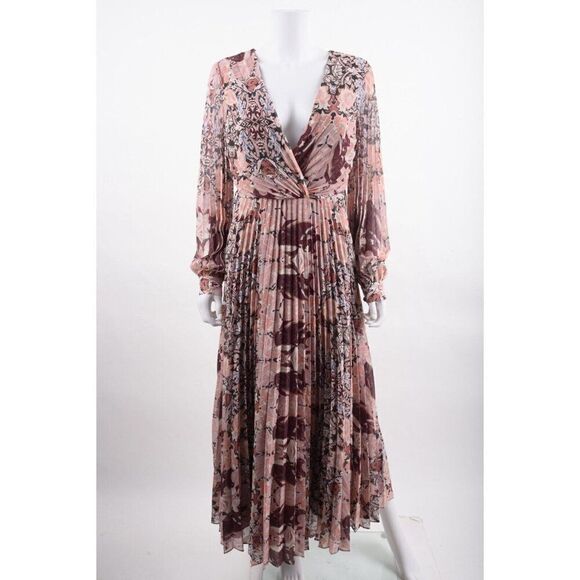 Badgley Mischka Womens Pleated Maxi Dress Sz 8 Multi-Color Pink Red Floral NWT