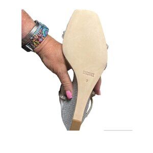 Badgley Mischka Collection Womens Silver Unity Square Toe Wedge Dress Sandals Sz 9 NIB ~ Last Pair