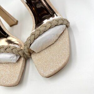 Gorgeous Badgley Mischka women's Fennel sparkly gold braided dress sandals / heels. Model / style number MP6720.