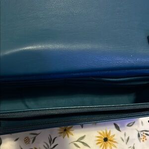Chic teal crossbody bag with chain strap. Stylish and versatile for any outing.