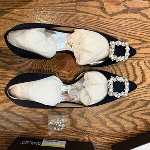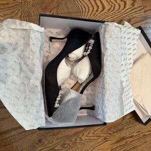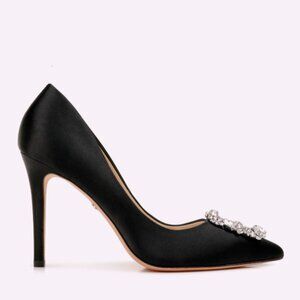 Badgley Mischka Womens Sz 1 Cher Crystal Buckle Pumps Black Satin Stilettos Glam