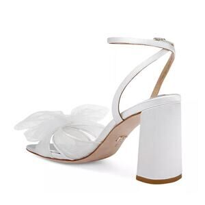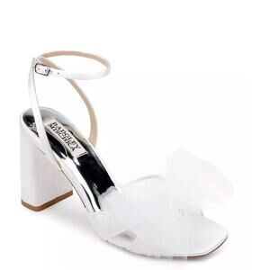 Badgley Mischka Women's Tess Block Heel Size 6 White Tulle Bow EUC