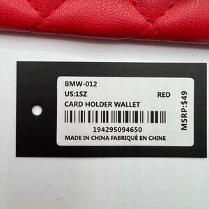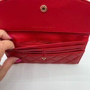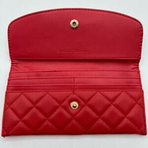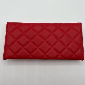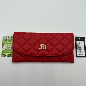 Badgley Mischka Womens Vegan Leather Long Card Holder Wallet Red Quilted NWT