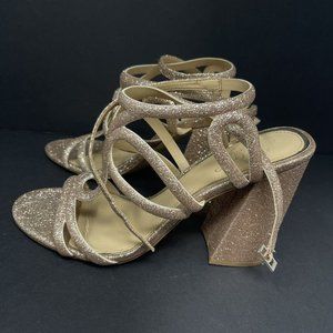 Badgley Mischka Womens heels size 9 Rose gold worn once wrap around ankle strap