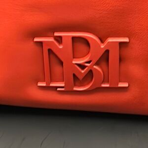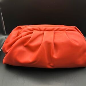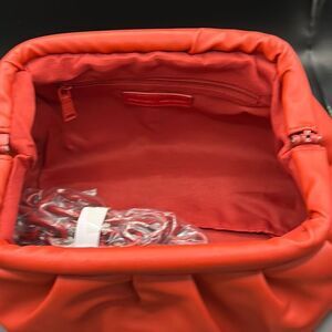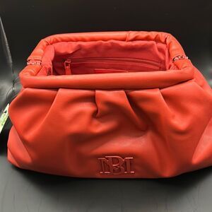 Badgley Mischka Wrapped Frame Clutch Purse Red Vegan Leather Attachable Strap
