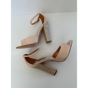 Badgley Mischka Wynter Block Rhinestone Heels Blush Pink Size 5.5